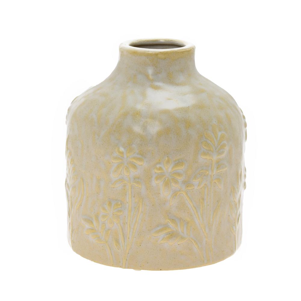 VÁZA MALÁ KRÉMOVÁ, VZOR TRÁVY KERAMIKA 18*18*20CM