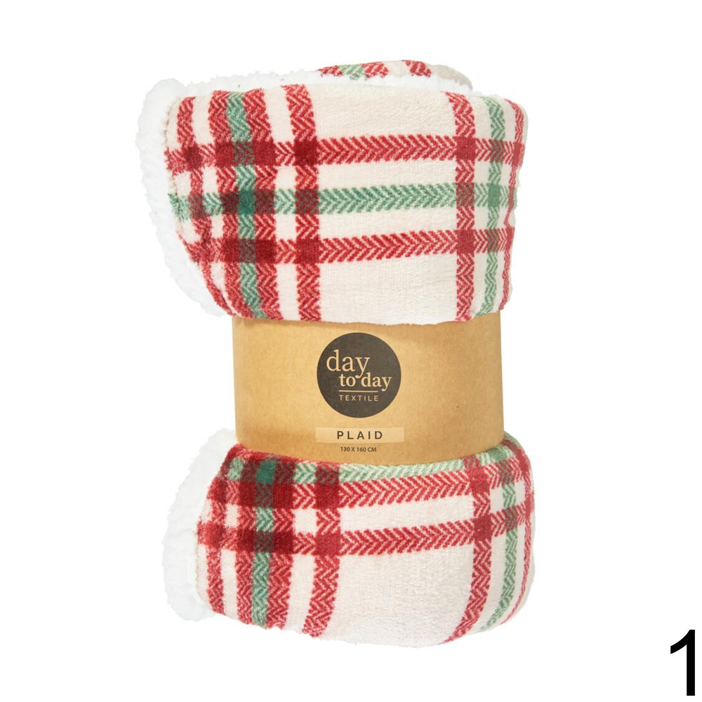Vánoční přehoz s červenými a zelenými vzory. 1