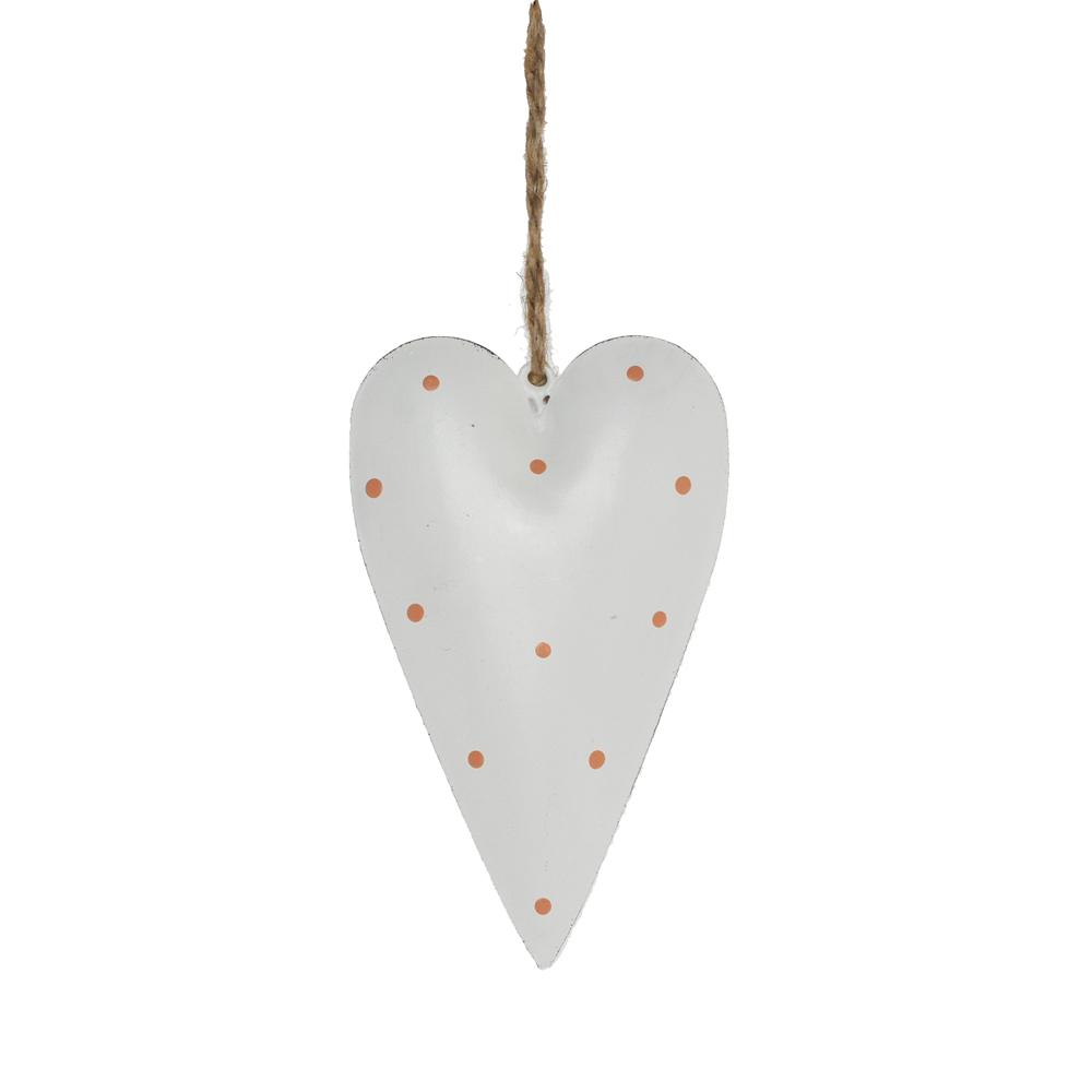 ZÁVES SRDCE S BODKAMI KOV 6,5x11CM BIELE