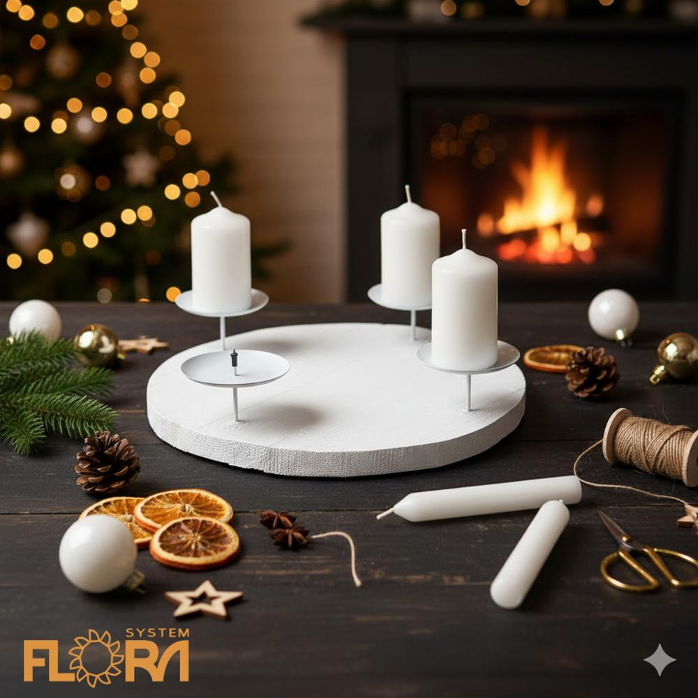 SVIETNIK KRUH BIELY 4 SVIEČKY DREVO 30x7CM