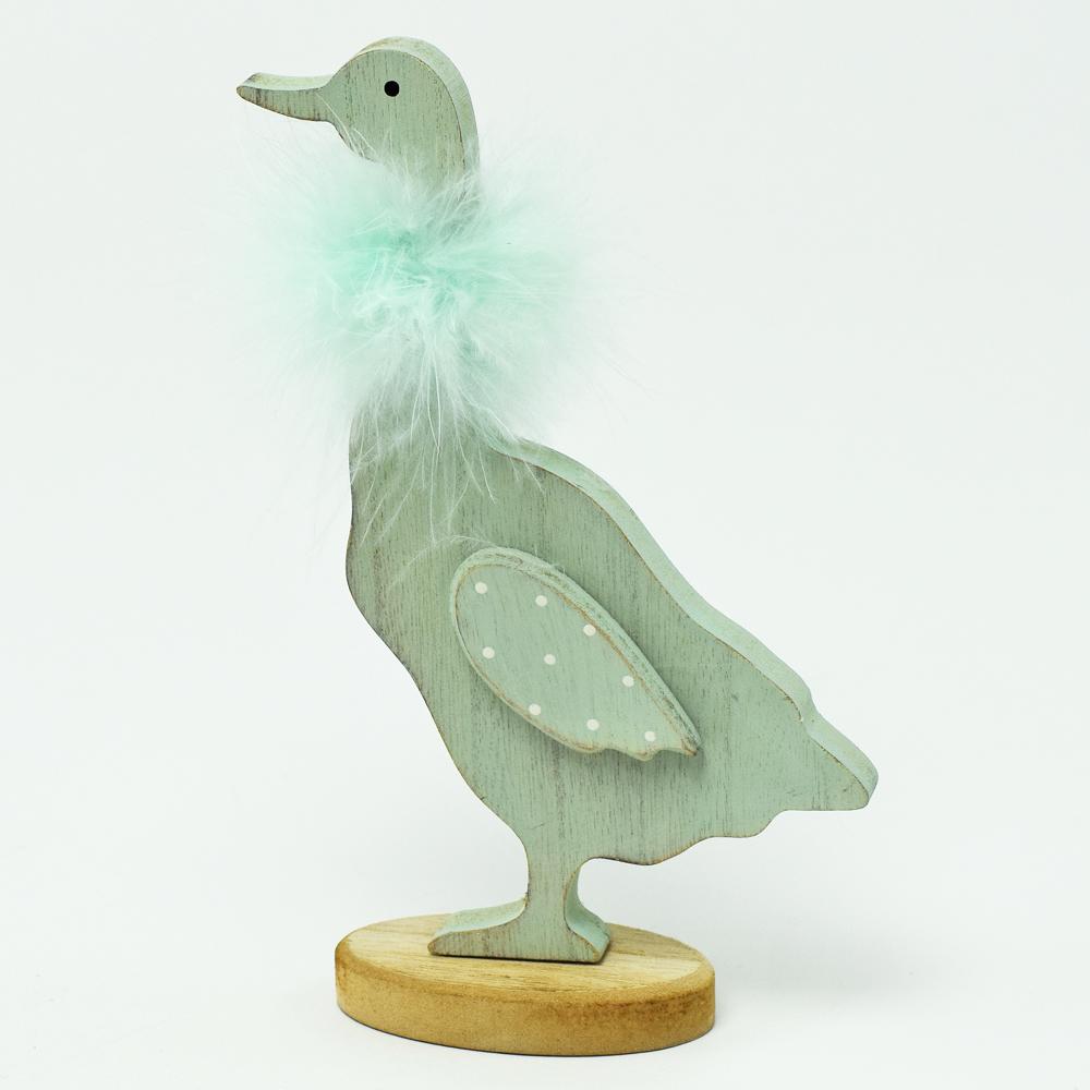 DREV. HUSKY NA PODSTAVCI + peříčko MODRÁ 19x12x4,5