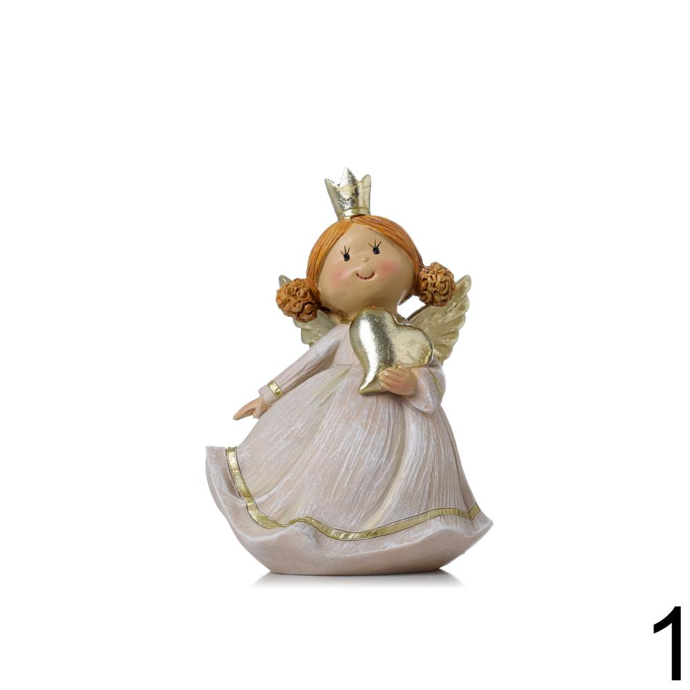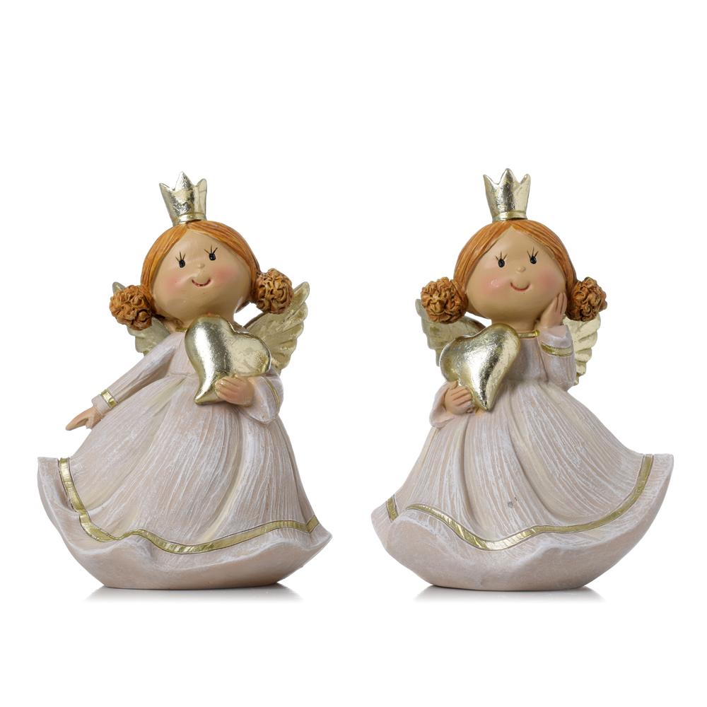 ANJEL KORUNKA, SRDCE ZLA/BIE/BÉŽ MIX/2 POLY 11*10*15CM