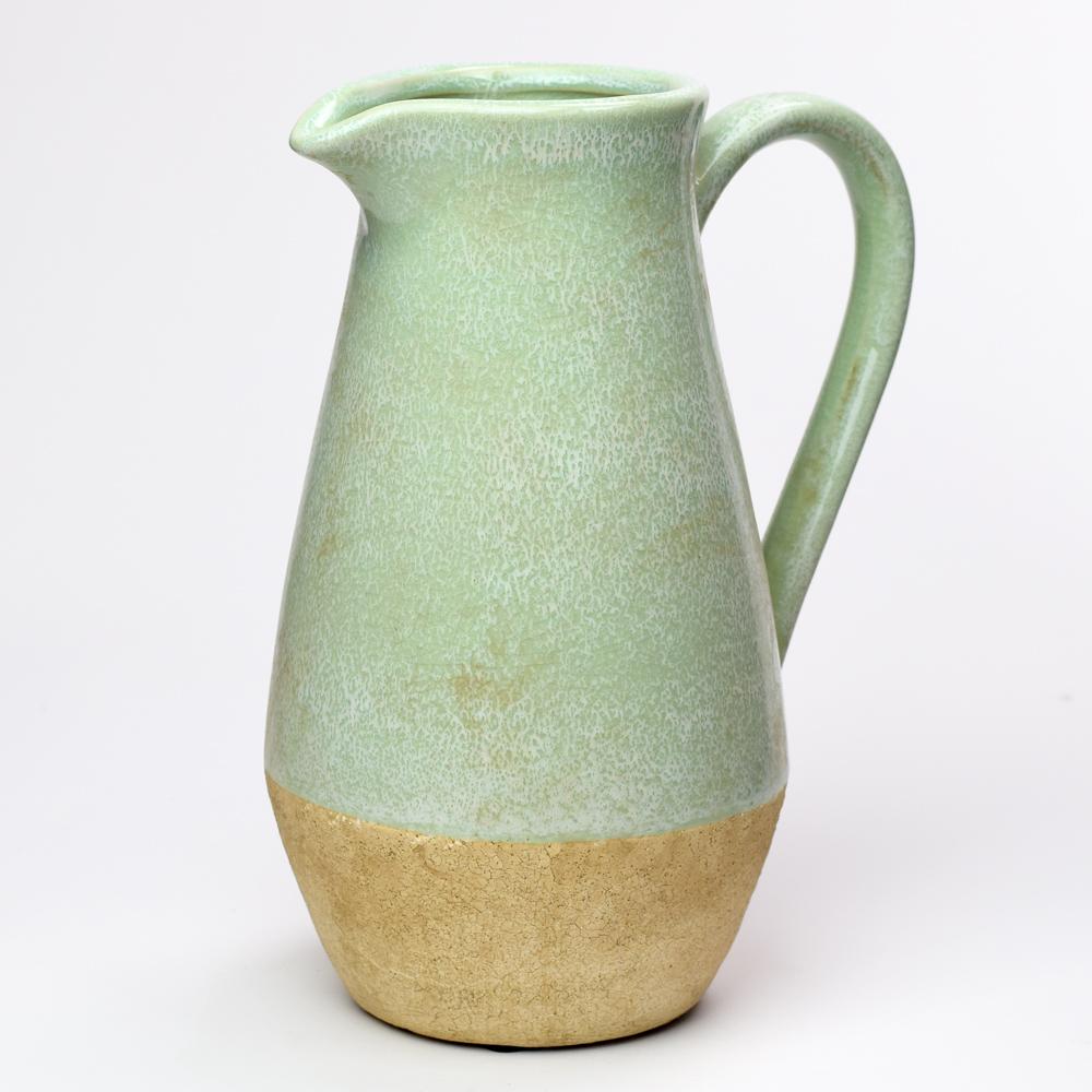 DŽBÁN S UCHOM KERAMIKA ZELENÝ 20x14,5x25,5CM SUPER CENA!