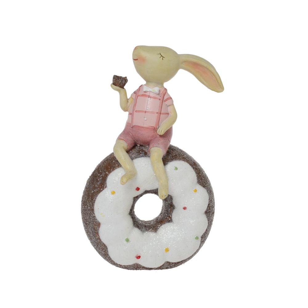 Růžový zajíček sedící na donutu je skvělým doplňkem pro vaše velikonoční dekorace. Tento keramický zajíček je vyroben z polyresinu a má jemné detaily. Jeho roztomilý vzhled a pastelové barvy přinesou do vašeho domova veselou atmosféru. Ideální na ozdobení stolu nebo jako dárek pro milovníky zajíčků.