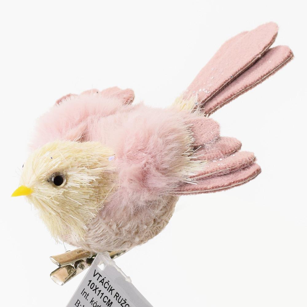 PTÁČEK RŮŽOVÝ CLIP 10X11CM