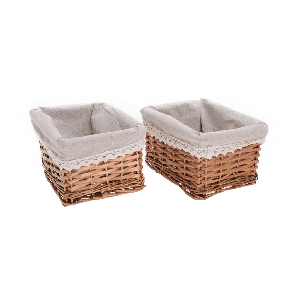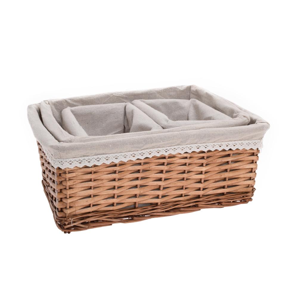 PRÚT. KOŠÍK S/3 OBDĹŽNIK HNEDÝ BIELA LÁTKA 40x30x16CM + 34x24x14CM + 18x14x12CM