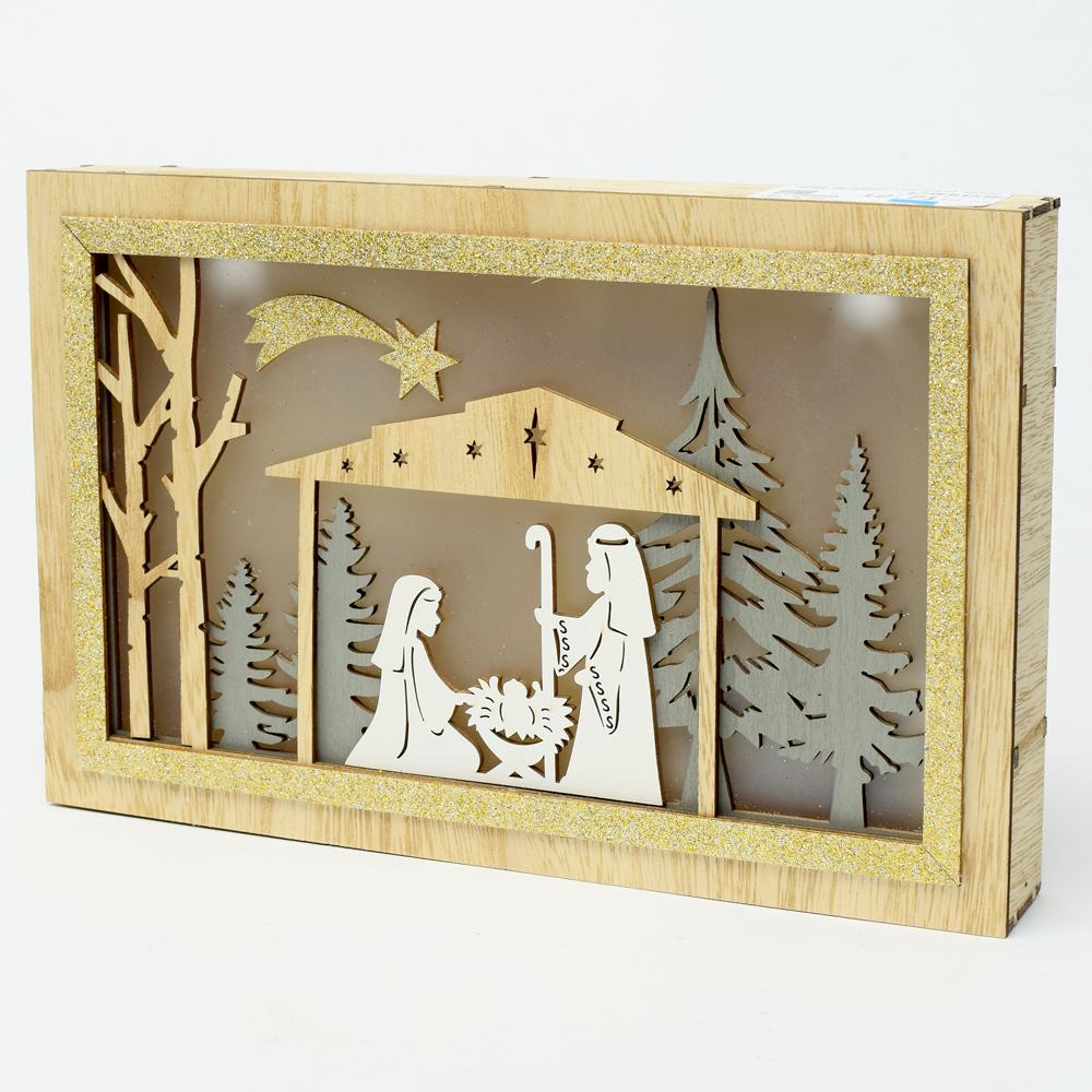 OBRAZ BETLEHEM LED DREVO NATUR 28x3,5x18CM SUPER CENA!
