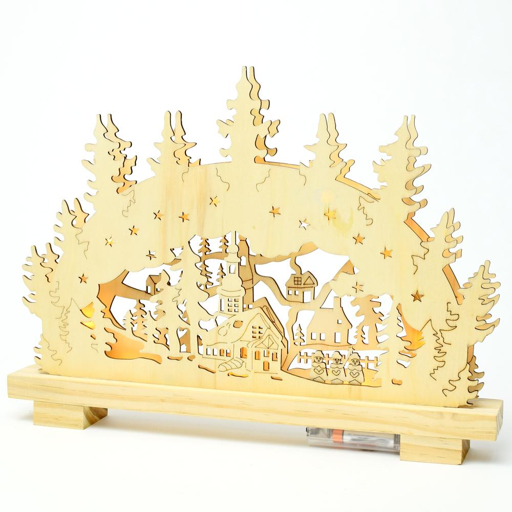 Vánoční krajinka z bílého dřeva s LED osvětlením.