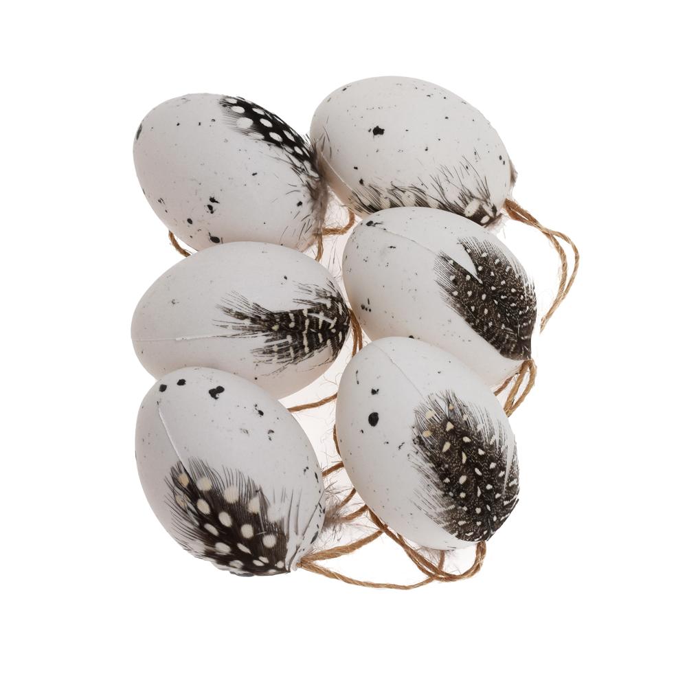 ZÁVES VAJCE S PERÍM PLAST S/6 6CM BIELY