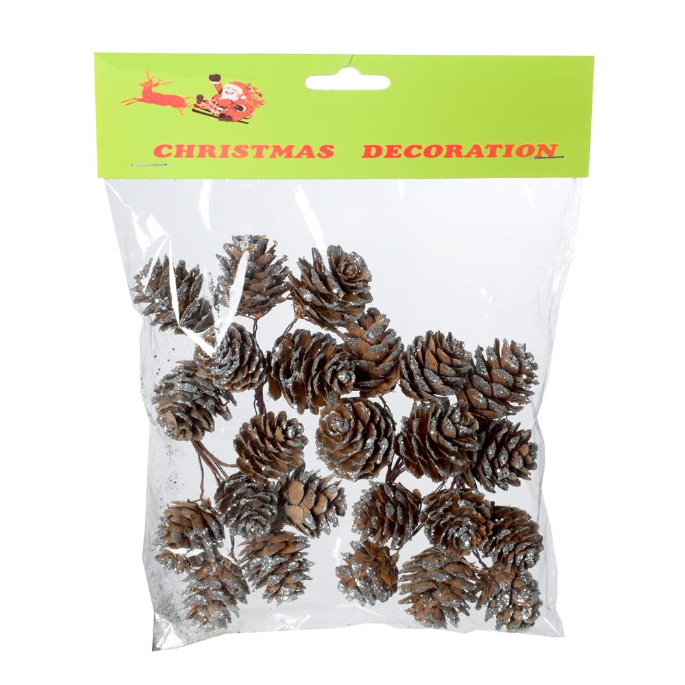 Stříbrné šišky v sáčku, 24 kusů.