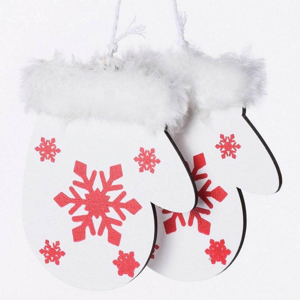 DREVENÉ RUKAVICE ZÁVES BIELA+ČERV 11x7CM