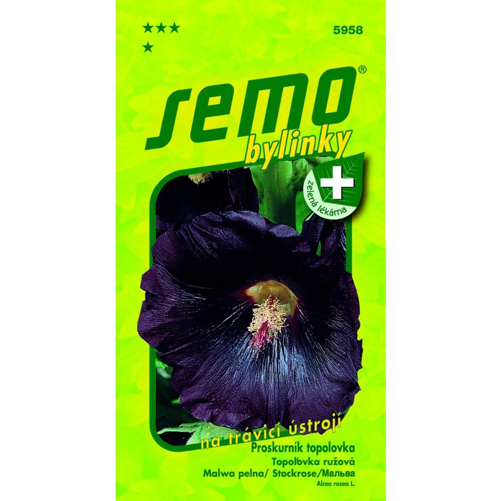 TOPAZ (kód 5958) – kolekce ZELENÁ LÉKÁRNA – dvou až víceletá rostlina dorůstající výšky až 2 m, vytvářející v prvním roce přízemní růžici listů. Ve druhém roce vyhání až 2 m vysokou květní lodyhu, na níž rozkvétají velké černofialové květy mající až 10 cm v průměru. Kvete druhým rokem od června do září. Topolovka vyžaduje teplejší polohy chráněné před větrem. Daří se jí na půdě hluboké a bohatě zásobené živinami a humusem. Květy s kalichy sklízíme ihned, jak rozkvetou (červen) a to nejméně jednou za dva dny. Uštipujeme těsně pod kalichem a to za plného rozkvětu. Nejlépe je sbírat květ v dopoledních hodinách po opadnutí rosy. Působí protizánětlivě a mírně projímavě. Chladí a uklidňuje sliznice, pomáhá při podráždění úst, hltanu, žaludku, střev a také při zánětech krčku močového měchýře. Užívá se např. při bronchiálním zánětu nebo chronickém zánětu žaludku a střev. Má také využití v potravinářství a lihovarnictví jako tmavopurpurové barvivo.