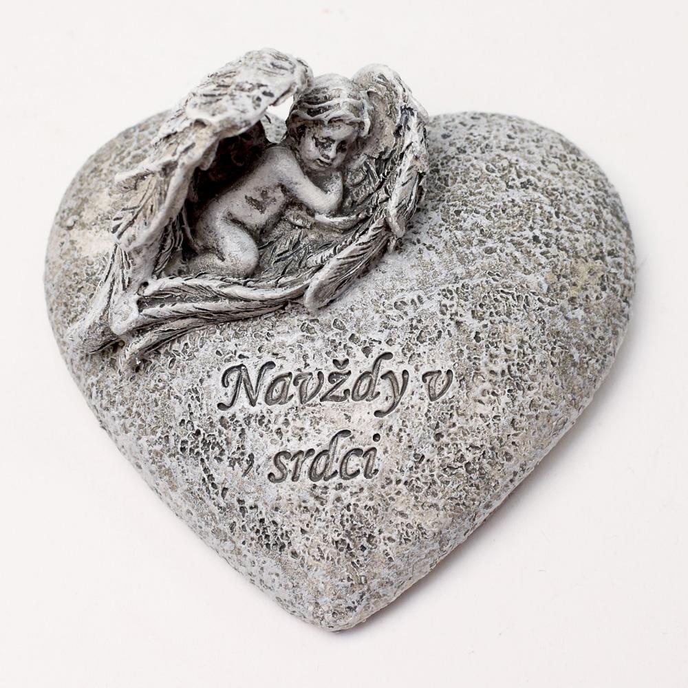 SRDCE S ANJELOM SIVÉ 7,5x7x4,5CM POLYRES