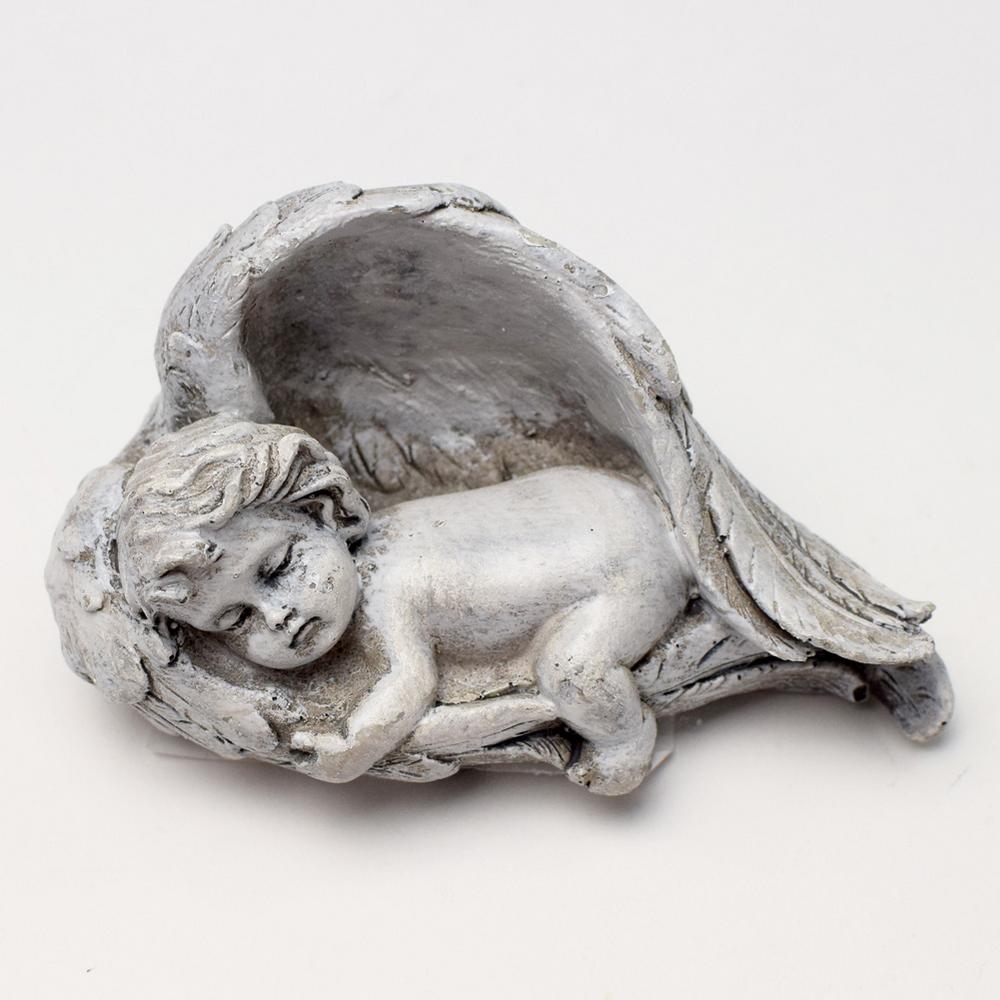 ANJEL V KRÍDLACH SIVÝ 9,5x6x6CM POLYRES