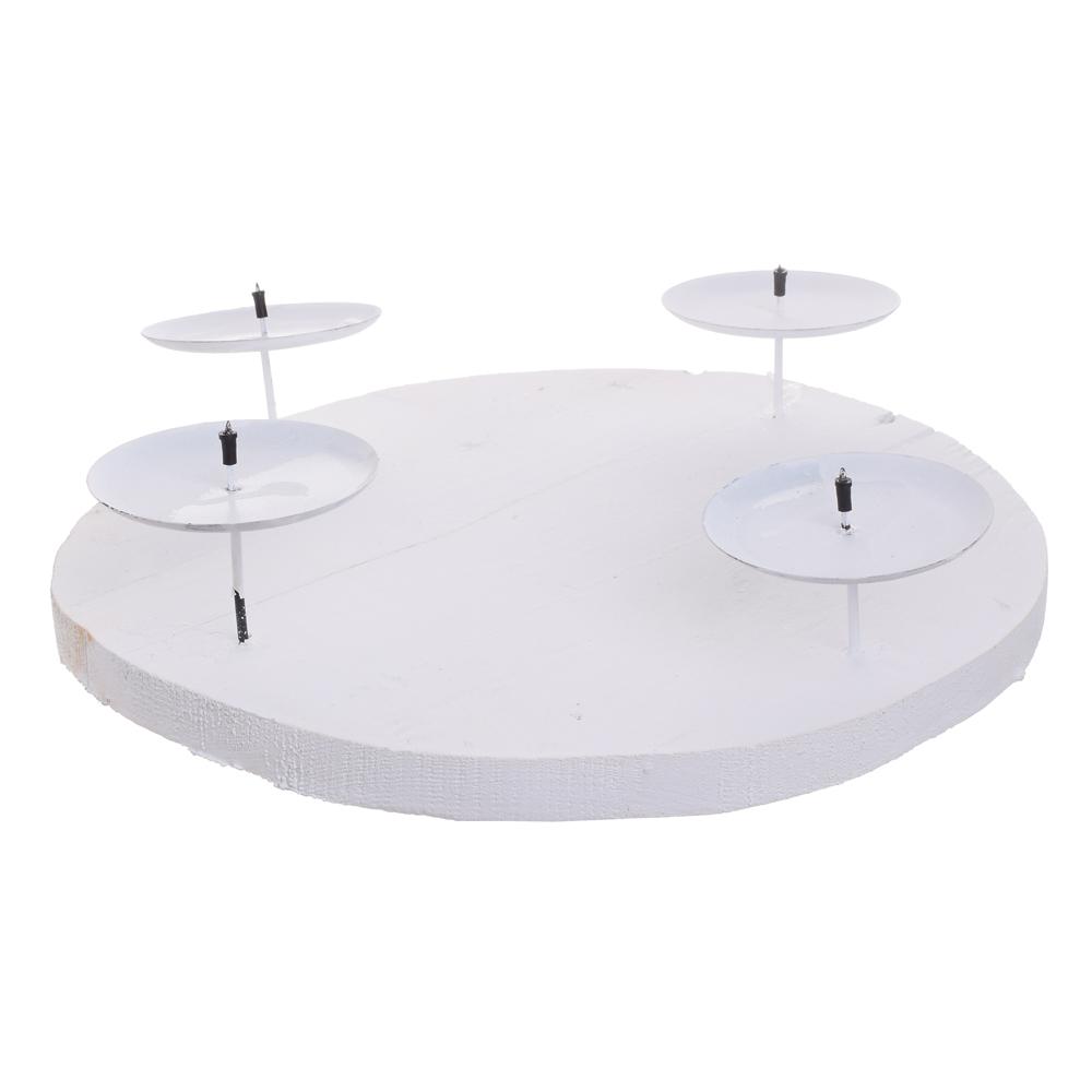 SVIETNIK KRUH BIELY 4 SVIEČKY DREVO 30x7CM