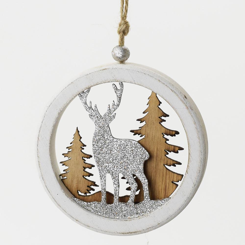 ZÁVĚS KOULE VZOR JELEŇ DREV. 10X10X1,5 CM